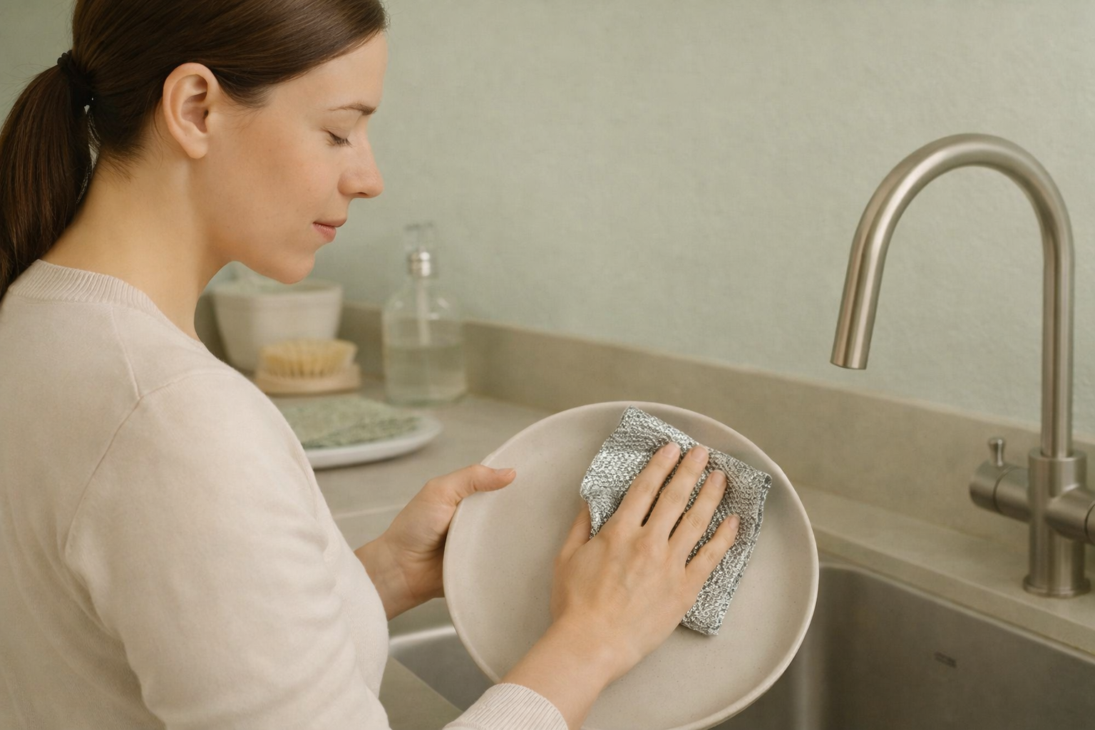 Evera ProScrub™ is crafted from premium, high-performance woven mesh made of stainless steel and polyester—the same materials used in durable, quick-drying textiles.